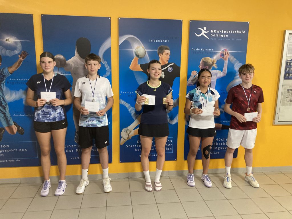 Die Kinder und Jugendlichen der Stadtwerke Solingen Badmintonschule des STC erreichten viele gute Platzierungen, ganz oben auf dem Siegertreppchen standen am Ende Nikolaj Pecenica (JE U11), Melina Viola (ME U11), Lea Riemer/Eileen Threamkanpon (MD U13) und Greta Goosmann/Lorena Hanz (DJK Solingen) (MD U19).